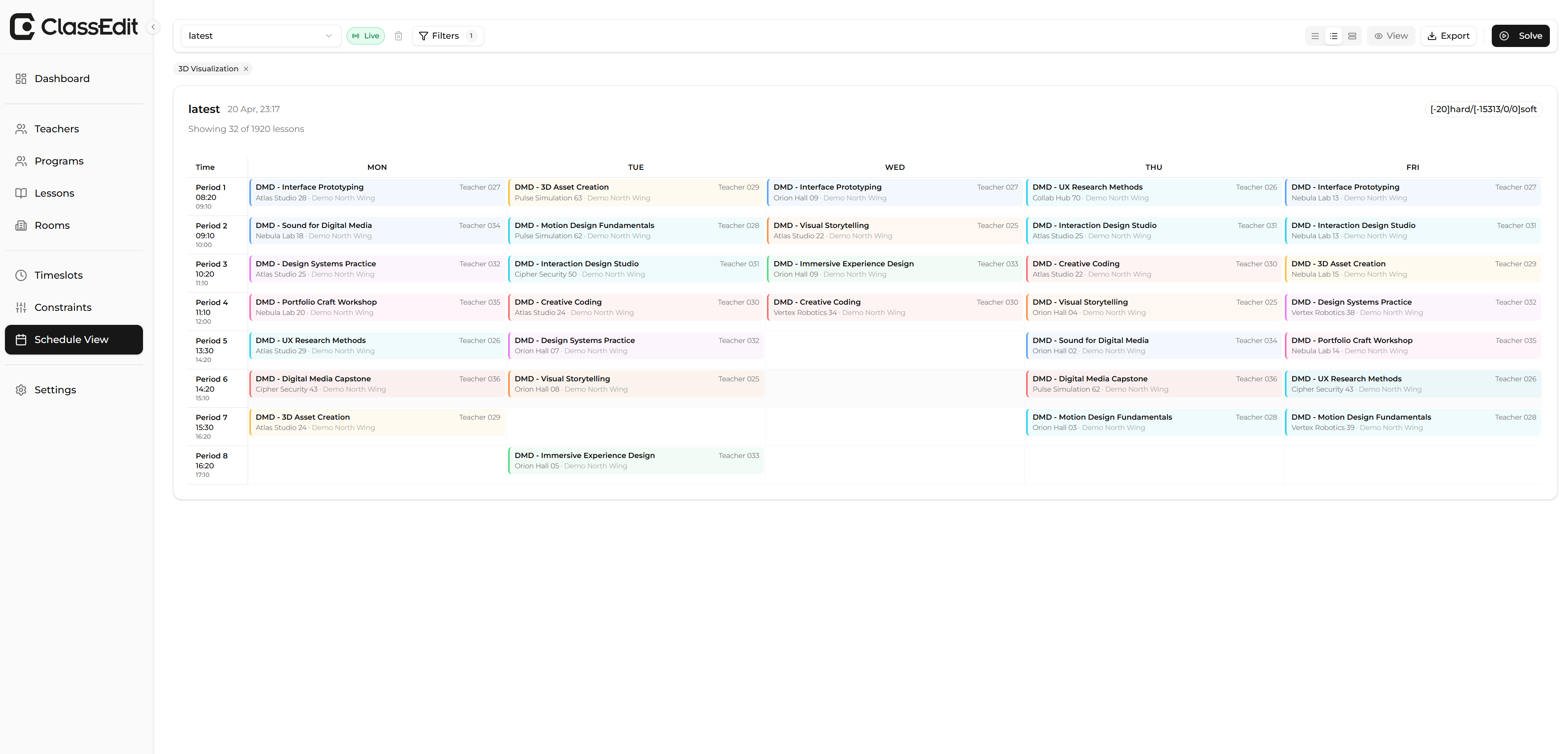 ClassEdit generates a fully feasible, conflict-free timetable, explains every decision it makes, and puts your planners in complete control to review, refine, and publish with confidence.